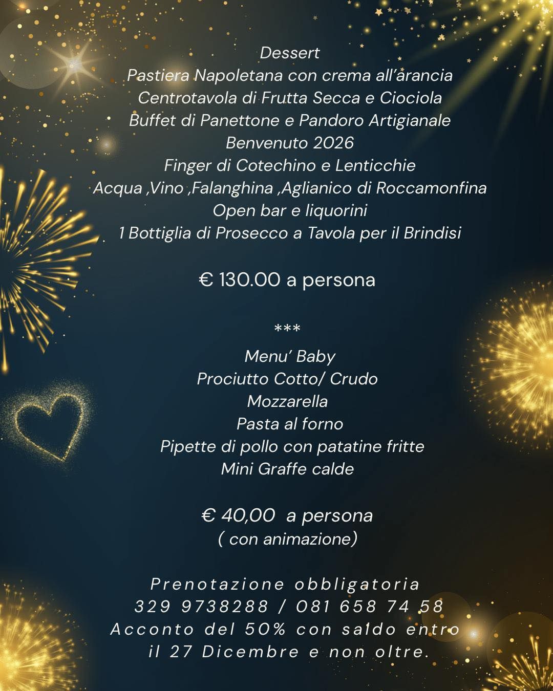 Scegli di passare, con noi e i tuoi familiari, questa giornata speciale di giubilo, ad aspettarti un personale qualificato e accogliente che ti guiderà attraverso un menù ricco di squisite sorprese.